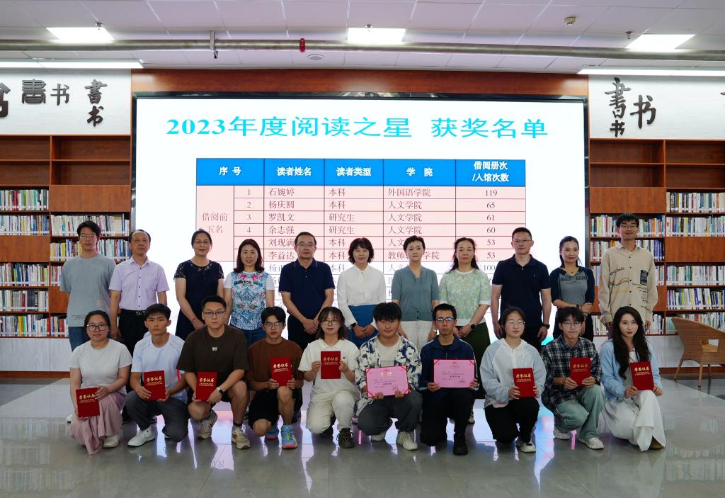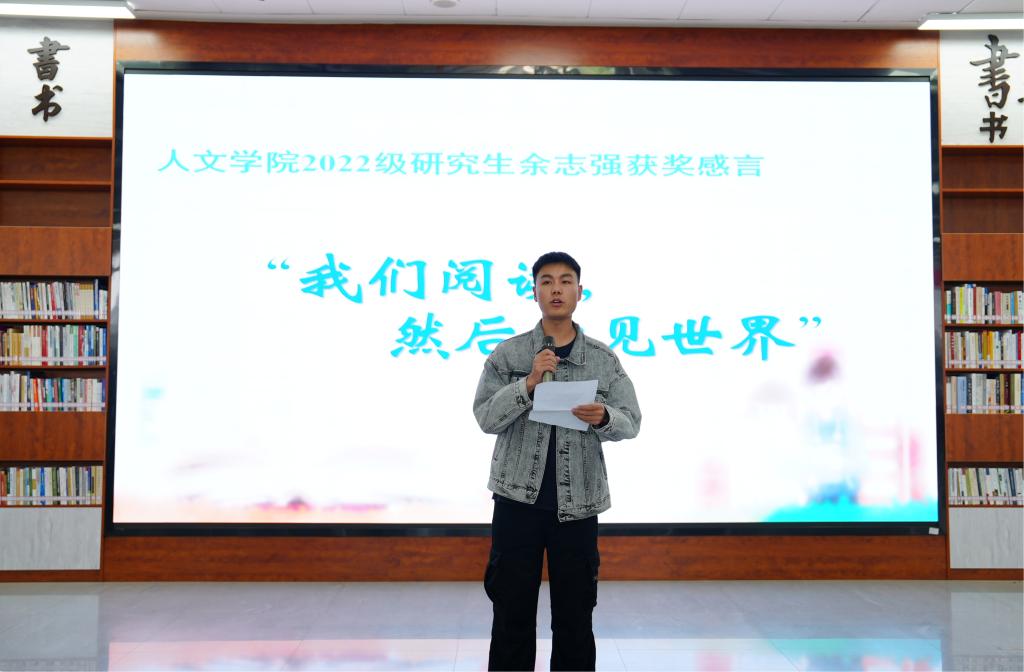 启动仪式上,与会领导为10位获得全校“阅读之星”的同学颁奖。“阅读之星”人文学院2022级研究生余志强与师生分享了读书感言。