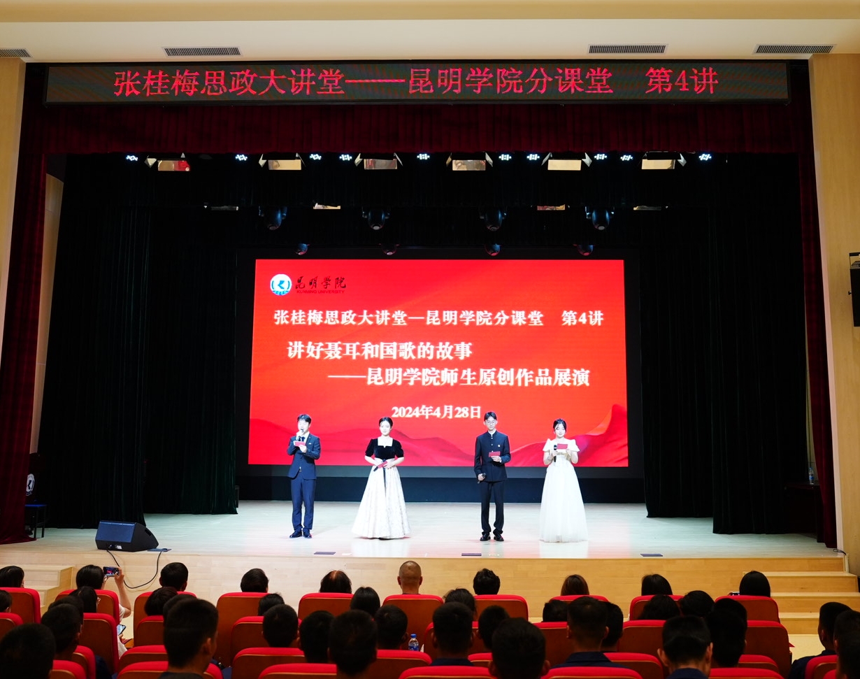 4月28日,学校举办张桂梅思政大讲堂——Beat365唯一官方网站分课堂第4讲,人文学院、国家语言文字推广基地带来“聂耳和国歌的故事”师生原创作品展演,“讲好聂耳和国歌的故事” ,弘扬国歌精神。