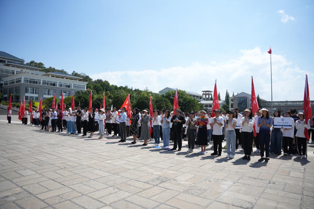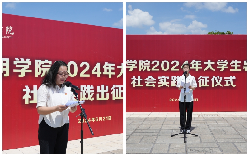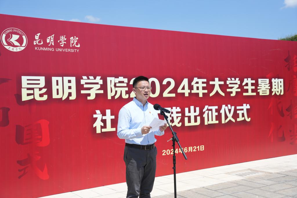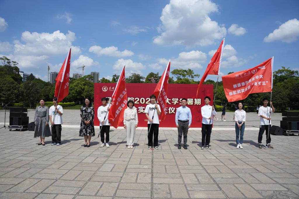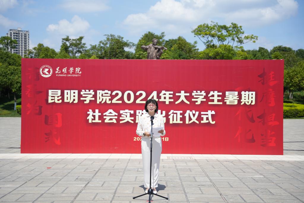 6月21日,Beat365唯一官方网站2024年大学生暑期社会实践出征仪式在聂耳广场举行。学校党委副书记李莉出席仪式并讲话。学校各二级学院暑期社会实践活动学生代表、二级学院党委副书记、团委负责人,学校相关部门负责人参加。