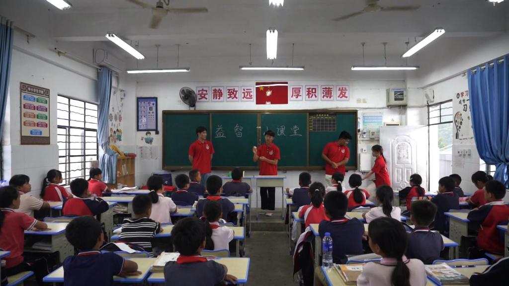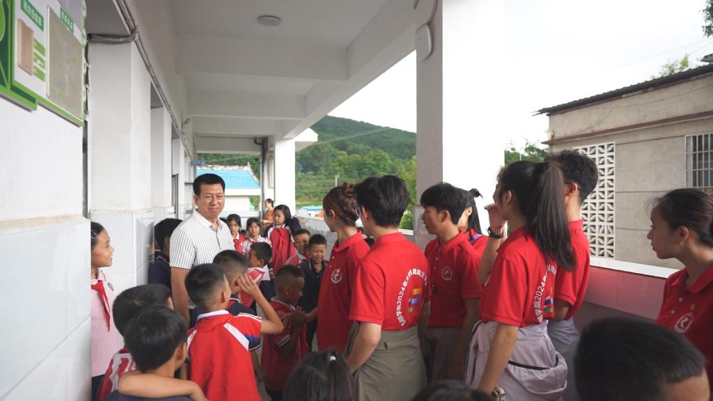 实践团来到勐腊县勐仑中心小学,向小朋友们送去了文教体育用品,面向一百多名六年级学生开展暑期志愿公益课程。教学内容分为童心向党宣讲、益智启航小课堂及“艺”起成长舞蹈课堂三个环节,通过演绎聂耳与国歌的情景剧,讲述中国青年脱贫攻坚与乡村振兴的奋进故事,生动有趣的物理实验,以及民族舞、现代舞与互动舞蹈教学,以革命故事传承红色基因,用科技艺术助力素质培养。