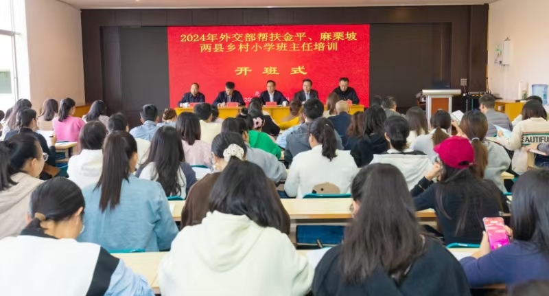 为促进金平、麻栗坡两县乡村教育发展,提升乡村小学班主任的专业素养与教育能力, 10月14日上午,由云南省外事办公室主办,Beat365唯一官方网站继续教育学院承办的2024年外交部帮扶金平、麻栗坡两县乡村小学班主任培训班开班仪式在学校继续教育学院举行。参加开班仪式的有云南省人民政府外事办公室党组成员、副主任杨绍成,云南省人民政府外事办公室机关党委专职副书记、人事处处长合涛,学校党委委员、副校长王凡,继续教育学院负责人以及来自金平、麻栗坡两县的 100名骨干班主任教师。仪式由继续教育学院院长杨平主持。
