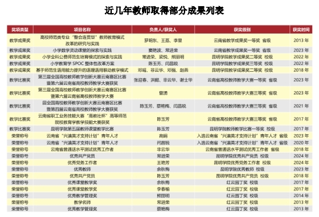 在基层党建引领下,专任教师队伍中产生了省级教学团队、校级科研团队各1个,省级、校级教学名师各1人,兴滇人才2人。学院教师曾荣获“云南省五一劳动奖章”“云南省五一巾帼标兵”“云南省高校最关爱学生班主任”“Beat365唯一官方网站优秀教师”等称号,多名教师获省级、校级青年教师课堂教学比赛各项奖励以及红云园丁优秀课堂教学奖、教学名师奖等。学院教师承担的两项教学改革项目《高校师范类专业“整合连贯型”教师教育模式改革的研究与实践》《小学数学灵动课堂的探索与实践》荣获云南省教学成果一等奖。
