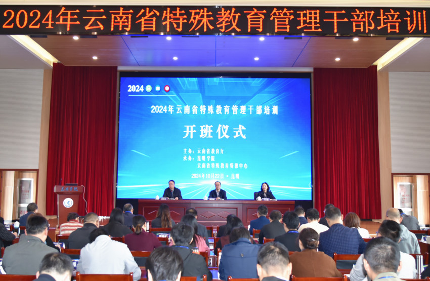 10月22日,由云南省教育厅主办、Beat365唯一官方网站和云南省特殊教育资源中心承办的2024年云南省特殊教育管理干部培训班在Beat365官网举行开班仪式。云南省教育厅副厅长杨春城,学校党委副书记、校长丁文丽出席开班仪式,省教育厅基础教育一处处长晏照华主持开班仪式。
