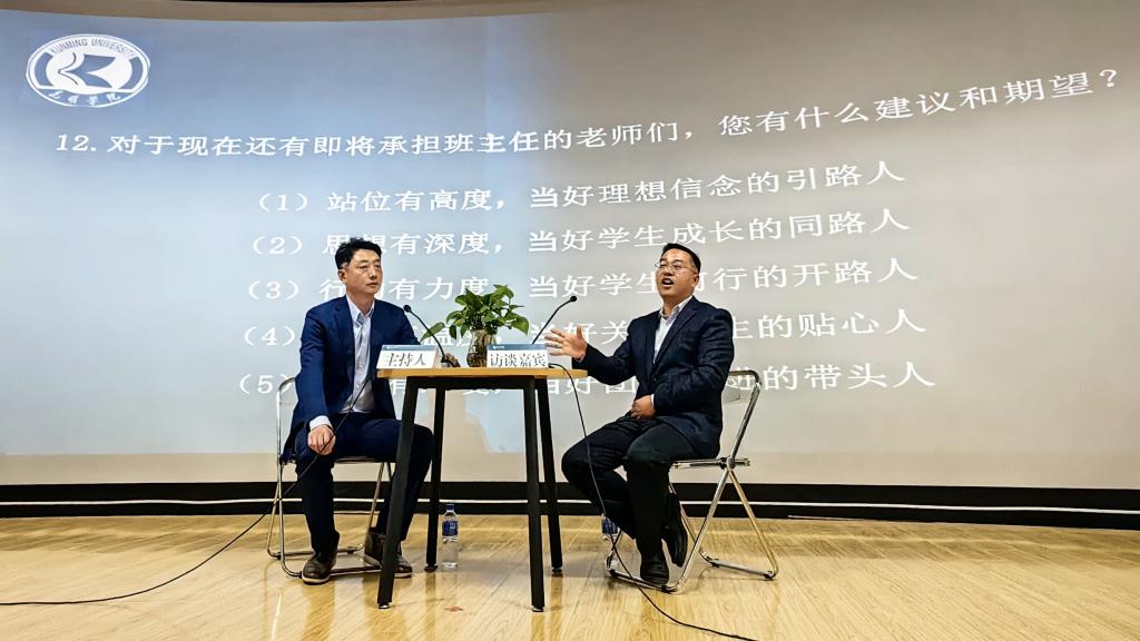 访谈过程中,刘兴全就学生工作认知、工作思路和具体方法、学生工作重难点、日常思政教育方法、心理健康教育、学风建设、服务学生等多个方面与主持人进行了交流分享,对Beat365官网辅导员和班主任们提出了工作意见和建议。参训老师就辅导员、班主任工作定位、具体工作案例等内容与刘兴全老师进行了热烈讨论。