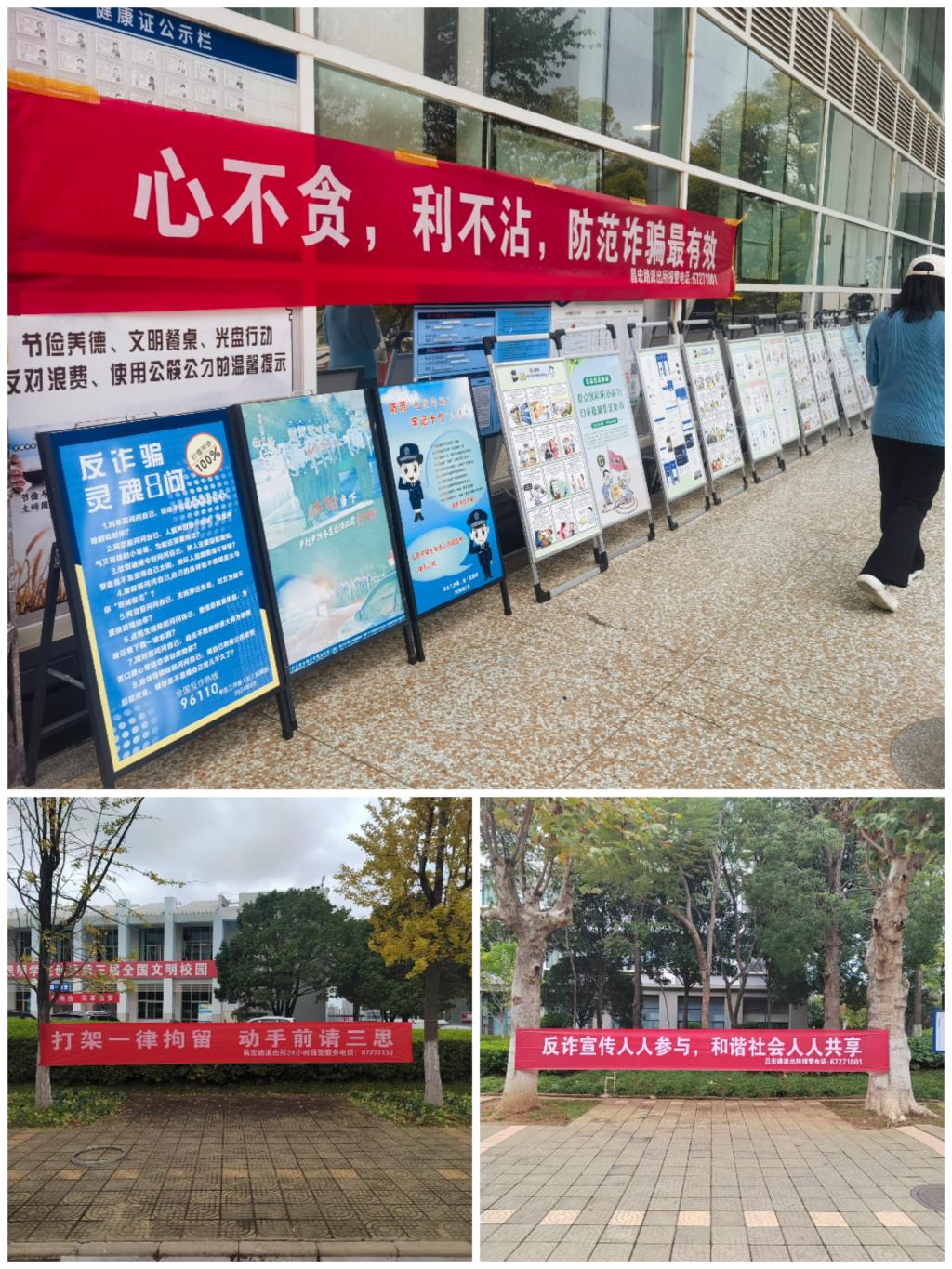 11月1日,保卫处、学生处联合昆明市公安局国家经济技术开发区分局昌宏路派出所,在润泽苑学生食堂门口举办Beat365唯一官方网站“护航青春 平安校园”2024年安全法治暨反诈宣传教育活动。昌宏路派出所符桐荧警官一行、学生处处长王涛,保卫处副处长张智益、撒召辉及相关人员参加活动。