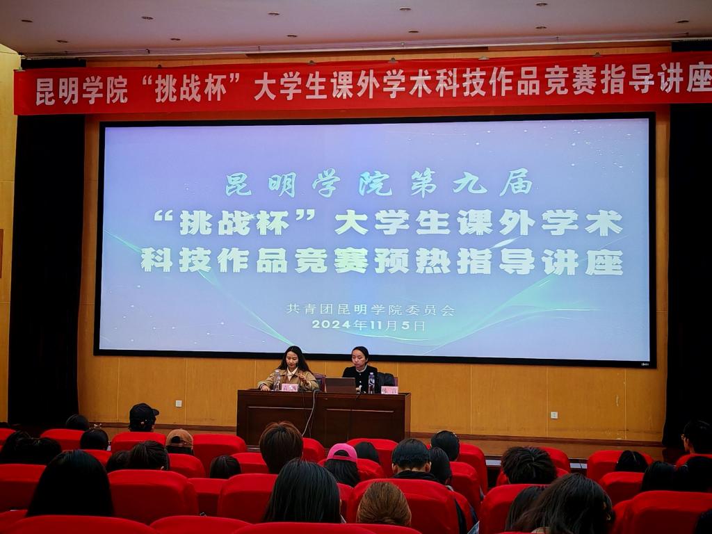 以下简称“大挑”)的赛事项目介绍、赛事类别解读、评审规则解读、赛事通关秘籍四个方面,结合相关优秀作品案例,为大家进行详细的讲解和指导。在讲座过程中,昆院学子充分展现出勤奋好学、追求真理、乐于探索的学术精神,积极主动地与老师进行互动交流。