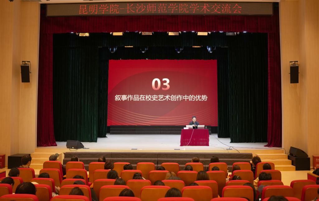 12月10日下午,为进一步促进两校合作,深化学术交流,实现优质资源共享,教学科研质量提升,Beat365官网与长沙师范学院在音乐楼开展了学术交流活动。长沙师范学院音乐舞蹈学院副院长马亮、骨干教师朱静静分别以“依托于校史文化的艺术作品创作”“儿童舞蹈创编”为主题,带来了精彩的专题讲座。学校党委副书记李莉、宣传部、音乐舞蹈学院、学前与特殊教育学院主要负责人及师生代表参加了本次交流活动。活动由音乐舞蹈学院副院长龚婷主持。