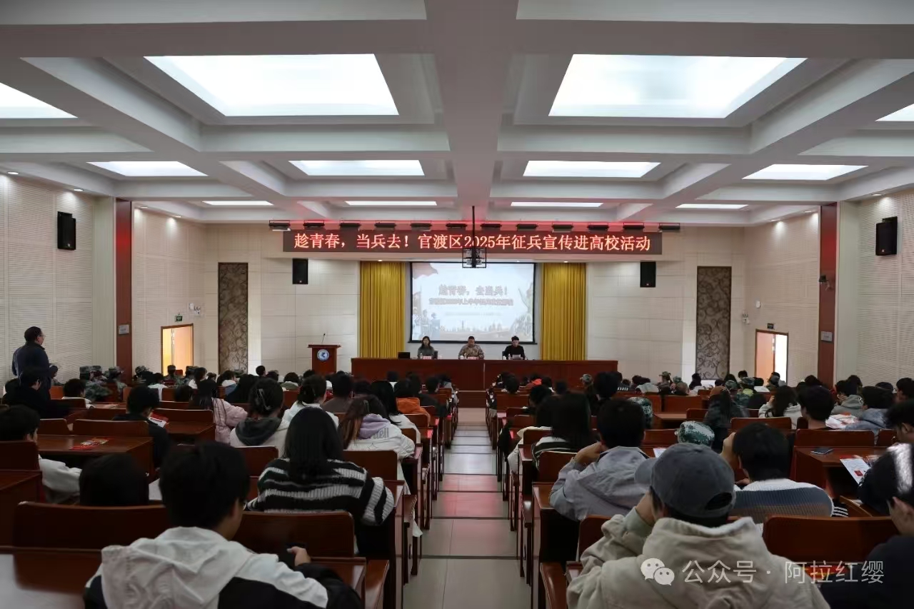 为进一步贯彻落实国家征兵政策,激发广大青年的爱国热情和参军报国的积极性,12月13日下午,校武装部邀请官渡区征兵办到校开展“趁青春,当兵去!”春节征兵宣传活动。
