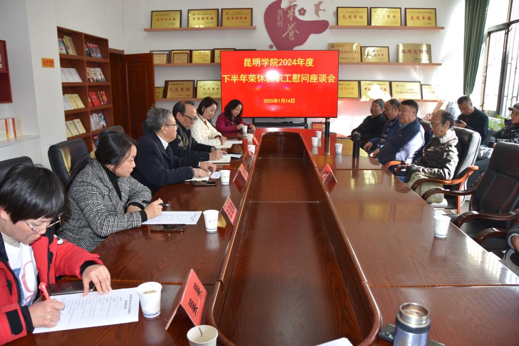 1月14日,学校2024年度下半年荣休教职工慰问座谈会在离退休活动中心召开。学校党委副书记、工会主席王文成出席会议,组织部、人事处、离退休工作处、工会部门负责人及工作人员,分工会主席、工会小组长代表,荣休教职工参加会议。工会常务副主席王亚越主持会议。
