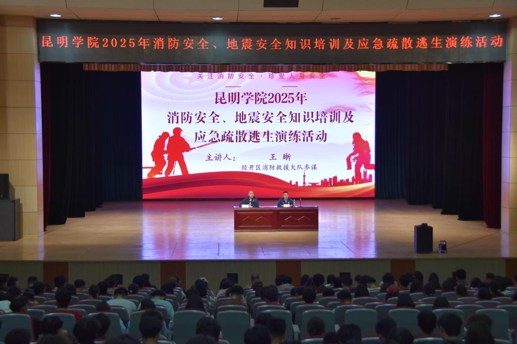 为切实增强全校师生的消防安全意识,提升地震自防自救能力,推进应急疏散安全宣传教育工作,4月25日下午,保卫处在学生会堂开展了2025年消防安全与地震安全知识培训及地震应急疏散逃生演练活动。