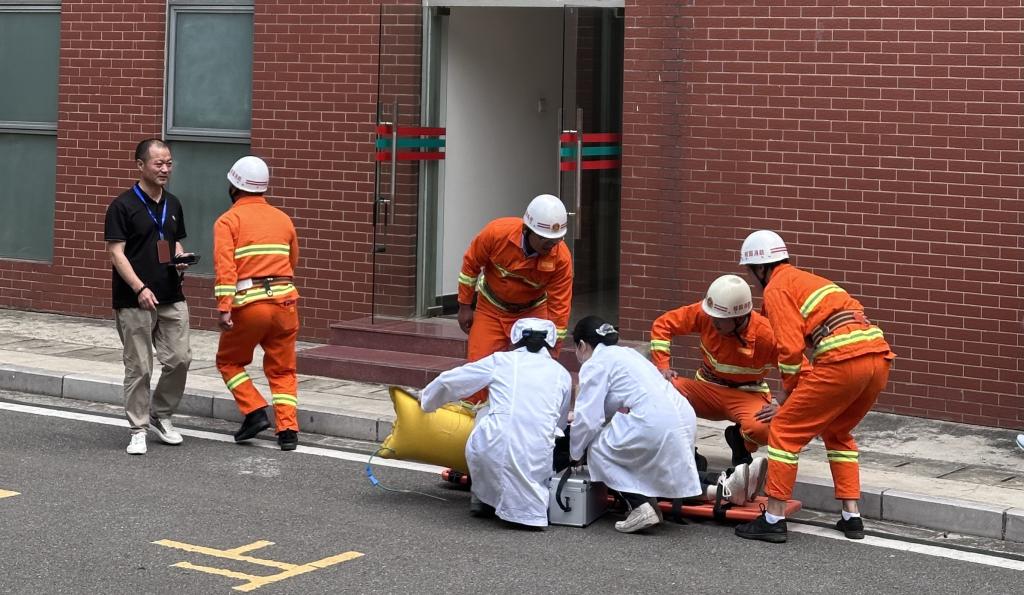 王晰参谋结合真实案例,系统地讲解了校园火灾隐患的识别与预防、初期火灾的扑救方法、灭火器材的规范操作以及正确的逃生自防自救技能等知识。培训结束后,随即开展了消防与地震应急疏散逃生演练。900余名现场人员在引导员的指挥下,迅速从会堂撤离至南面停车场。与此同时,义务消防队及校医院相关人员成功完成了模拟现场伤员的抢救工作。