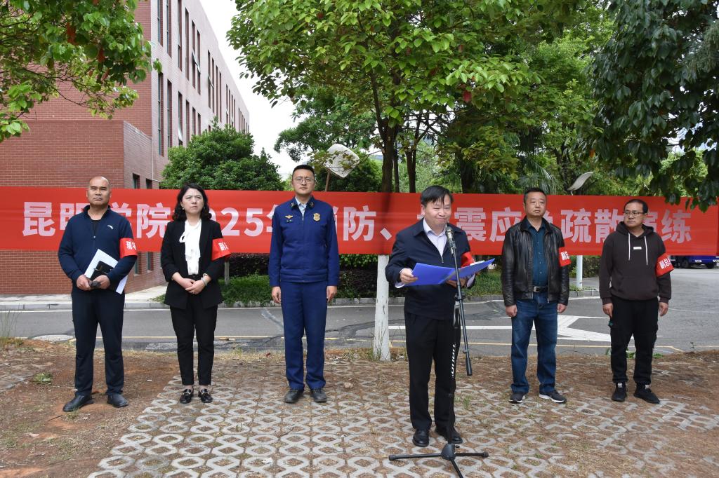 学校党委委员、副校长彭志远担任本次活动的总指挥。昆明市经济技术开发区消防救援大队王晰参谋受邀为大家进行专题培训。保卫处、学生处相关负责人,全校18个学院的辅导员及900余名同学参与了此次专题演练。