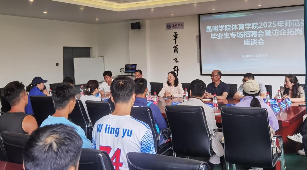 5月22日上午,体育学院体育教育师范类毕业生专场招聘会举行,学校党委副书记、校长丁文丽到现场调研指导工作,并与用人单位代表、体育学院班子成员、毕业生代表开展座谈。