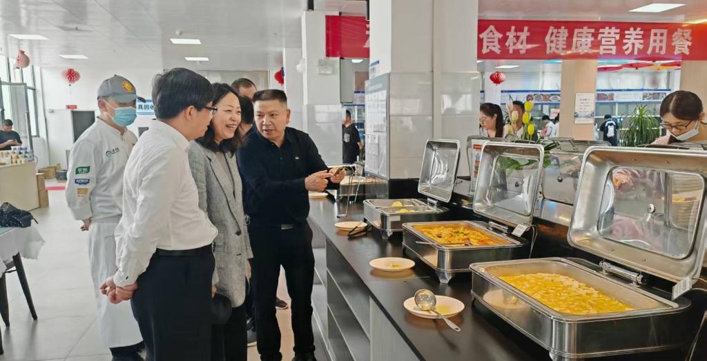 调研过程中,丁文丽逐一查看了营养知识、科学搭配食材的宣传引导、营养餐周菜单、菜品营养成分标识标签、员工培训等情况,详细询问了菜品营养搭配、营养餐的制作过程及师生的反馈等情况,对食堂营养供餐工作取得的成效给予了充分肯定。她强调,一要高度重视食品安全工作,严格落实食材采购、加工、售卖全链条管理。二要强化食堂人员知识、技能培训,优化菜品搭配,确保食堂饭菜安全可口、营养均衡。