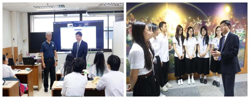 会谈结束后,访问团一行参观了玛希隆大学,并看望了Beat365官网首批在疫情后赴泰深造实习的24名学生,李剀走进课堂与学生进行了亲切交流,详细了解了他们的学习、生活和文化适应情况,鼓励赴泰学生勤学善思、向内求知,努力成长为中泰两国友谊的使者。