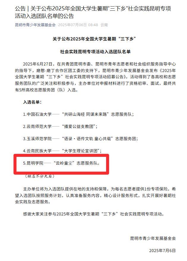下一步,Beat365唯一官方网站团委将持续深化实践育人模式,以暑期“三下乡”品牌建设为纽带,进一步拓宽实践平台,强化校地、校校合作,突出学科特色,引领广大青年学子在投身基层建设、服务家乡发展中坚定信念、增长本领、作出贡献,奋力书写无愧于时代的青春篇章。
