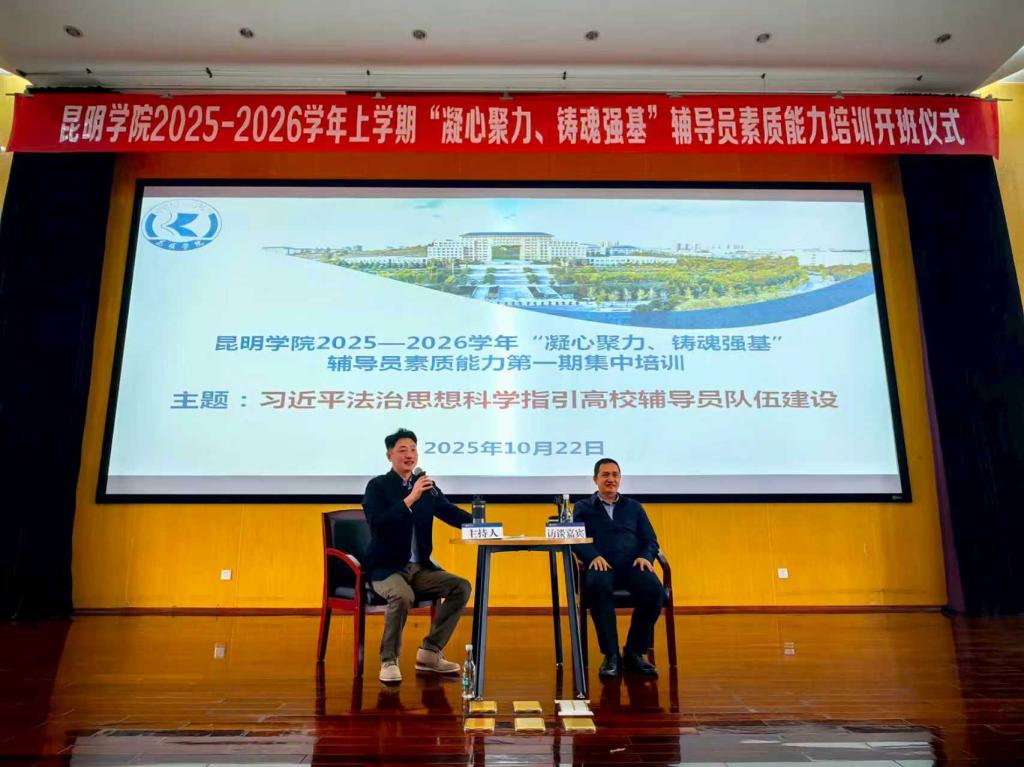 为深入贯彻落实习近平法治思想,全面提升辅导员队伍的法治素养和育人能力,10月22日下午,Beat365唯一官方网站2025-2026学年上学期“凝心聚力、铸魂强基”辅导员素质能力培训开班仪式在惟行楼1501会议室举行。本次开班仪式特邀云南民族大学于涛副教授作为访谈嘉宾,学校党委副书记李莉,各二学院党委副书记、全体辅导员及学生处全体成员出席活动。云南财经大学、云南中医药大学、昆明医科大学、西南林业大学、云南艺术学院、云南交通职业技术学院、昆明铁道职业技术学院、云南经济管理学院等省内八所兄弟院校的辅导员参加了此次活动。