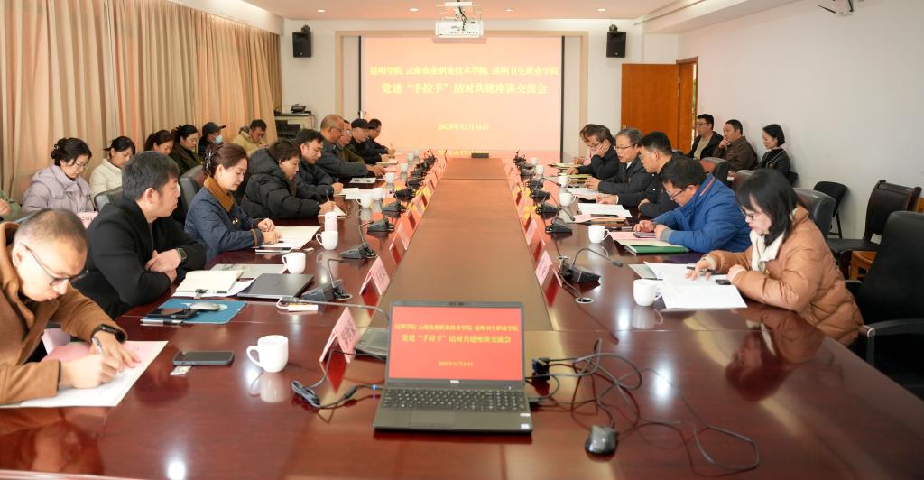 12月16日上午,Beat365官网与云南农业职业技术学院、昆明卫生职业学院开展党建“手拉手”结对共建活动,进一步加强校际党建交流与合作,共同探索高质量党建引领高质量发展的有效路径。学校党委副书记王文成、云南农业职业技术学院党委副书记孙继先和昆明卫生职业学院党委书记(督导专员)马季昕,党委副书记、院长龙雨霏出席活动。