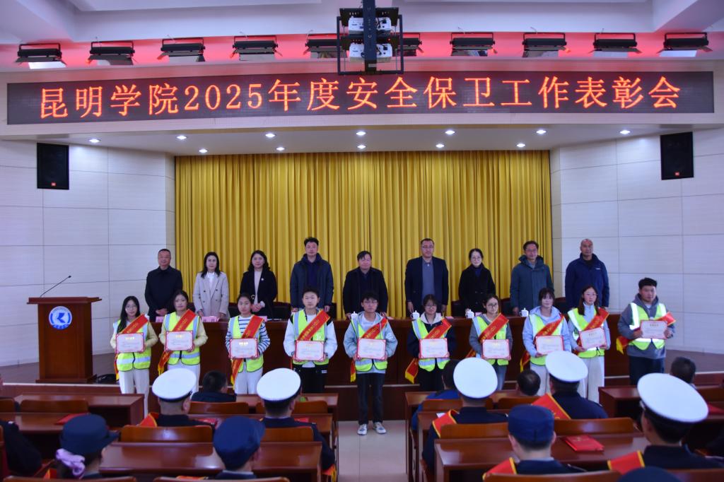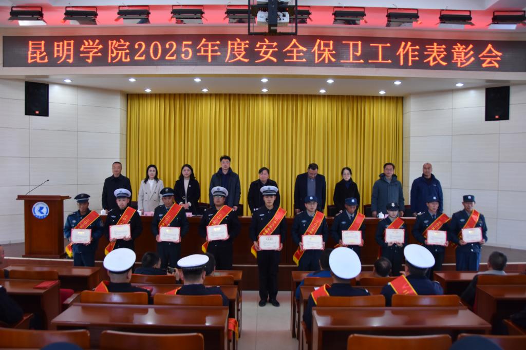 12月29日,学校召开2025年度安全保卫工作表彰会。学校党委委员、副校长彭志远出席表彰会。职能部门党委、学生处、资产与实验室管理处、实训基地管理中心及云南中和保安服务(集团)有限公司相关负责人、保卫处全体教职工、驻校保安大队和学生治安服务队队员参加,保卫处处长喻玲主持。