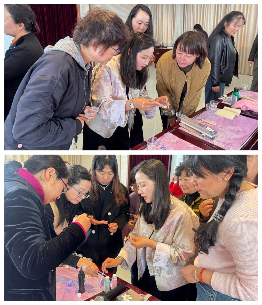 参与活动的教职工们对此次活动给予肯定,大家展示成果、分享心得,纷纷表示这场指尖上的“非遗”之约既沉浸式体验了中华优秀传统文化的独特魅力,又感受到学校党委对女教职工的关怀与慰问,让大家在节日的氛围中舒缓身心、陶冶情操,进一步增强了文化自信与对学校教育事业的坚守和热爱。