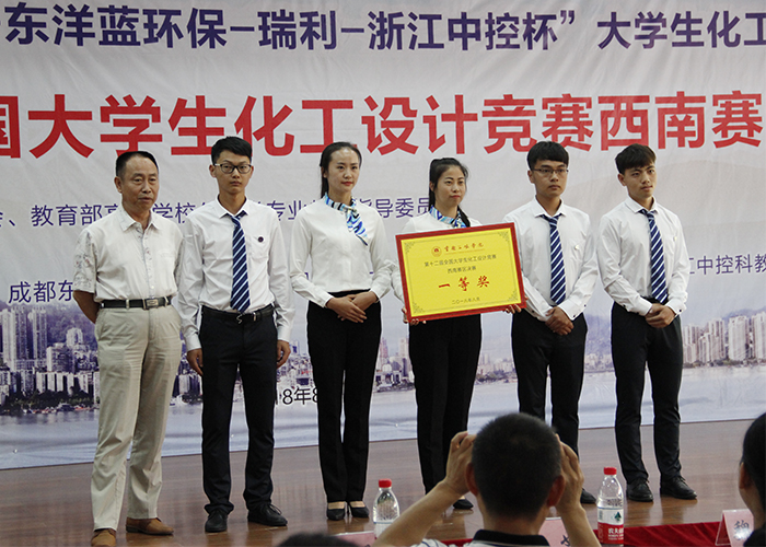 本次竞赛由中国化工学会、中国化工教育协会、教育部高等学校化工类专业教学指导委员会主办。大赛历时五个多月,共有来自西南赛区的四川大学、重庆大学、昆明理工大学、贵州大学等25所高校、60支代表队、300余名学生参赛。 60支参赛队伍分4组进行小组赛,通过现场展示、专项评审等环节,由专家团、教师、学生组成的评委根据选手现场答辩和专家提问考核环节的表现,共评选出西南赛区金、银、铜奖各1项,特等奖5项,一、二、三等奖52项。