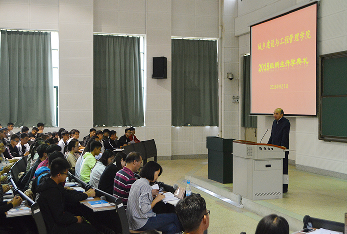 9月1日,“城建学院2018级新生入学典礼”在博雅楼2101隆重举行。城建学院副院长莫南明、党总支副书记侯青妮、副院长杨光华以及相关老师和辅导员参加了本次大会。会上,莫院长代表城建学院全体师生对2018级新生的到来表示热烈的欢迎,就校史、校情,以及城建学院的师资力量、人才培养方案、硬件设施、学生的就业情况、科研成果等作了相关介绍。侯青妮副书记在会上对学校学生管理、校园内的管理措施、安全及服务设施、新生入学后的安排、以及大学生的学习和生活特点等作了相关介绍。杨光华副院长对我院土木工程、水利水电工程、工程造价和建筑专业做了详细的介绍。学院的相关老师对各专业的学科、人才培养方案,教学,党、团工作,学籍管理,学生勤工助学、贷、补等相关政策,学生服务保障、宿舍管理等工作做了详细的介绍。