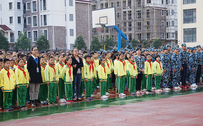 开学典礼伴随着雄壮的国歌声和士官学校教官们飒爽的英姿拉开序幕,新学期的第一面五星红旗高高飘扬在校园上空。