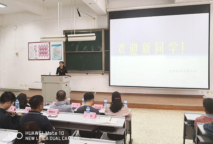 王宝玲主任做第一专题的入学教育。王主任给同学们详细介绍了学校的总体情况和化科系的专业设置、师资队伍、学生情况、科研和就业等方面内容,同时表达了对18级化科系新生的欢迎、期许与祝愿。