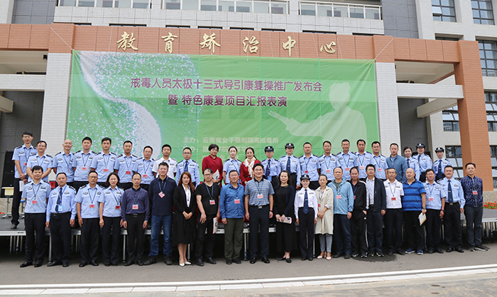 9月7日,体育学院陈云海老师主持的《戒毒人员太极十三式导引康复操》教学实践项目专家论证会在云南省女子强制隔离戒毒所举行。云南省戒毒管理局副局长宋云奎、教育处处长周丘、政策法规处处长林静秋,云南大学杨霞教授,昆明医科大学李军主任等专家参加了论证会。
