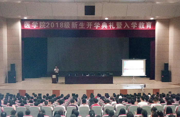 9月3日晚,医学院党总支书王建华利用新生入学教育的机会,对2018级新生共470多人进行了入党动员。为学生们科学地分析了大学生为什么要加入中国共产党,并阐述了申请入党所需的条件。他用鲜活的例子说明了当代大学生是祖国和民族的希望和未来,青年大学生应当加深对党的认识,树立正确的理想信念,积极争取早日加入中国共产党,为祖国的发展贡献自己的青春和力量。