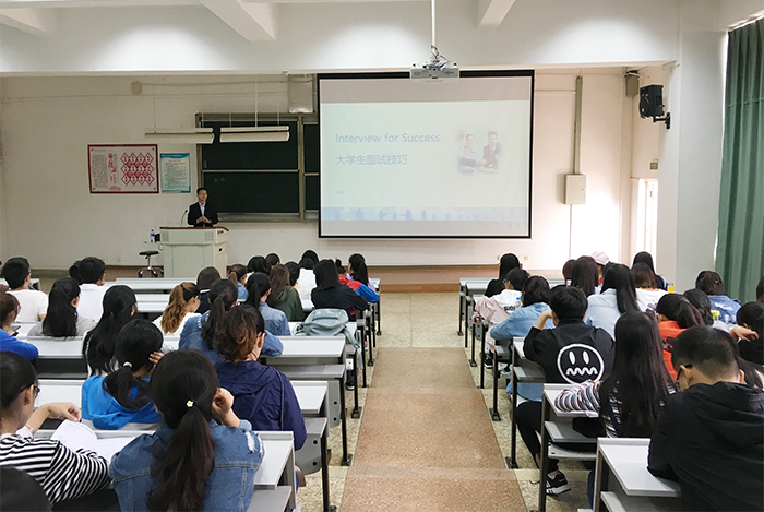 讲座中,许辉老师向同学们详细介绍了目前的就业形势,就面试考核内容、面试的正规着装、面试谈吐举止、公司招聘的基本流程、简历准备、自我介绍、如何回答面试官提问等同学们求职面试过程中可能遇到的方方面面的问题作了详细指导。许辉老师用“机会永远留给有准备的人”这句话与大家共勉。讲座结束后许辉老师与同学们进行了交流互动,同学们纷纷表示自己受益匪浅。