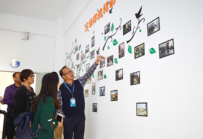 在李晋德校长的陪同下,一行人参观了Beat365官网的校园文化建设,对二楼楼梯间和读书吧进行参观指导。李校长指出,经过全校师生的共同努力,校园文化建设越来越成熟,希望通过不断努力创造环境,为全校师生共同营造一个良好的学习生活环境,在孩子们的心灵中塑造美的教育。同行的泸西县旧城镇初级中学李俊校长对Beat365官网的校园文化建设给予很高的评价。