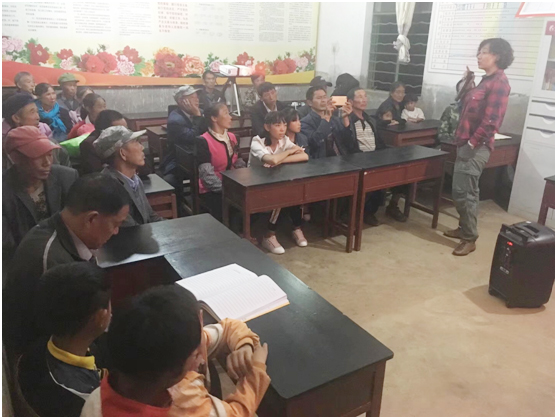 当晚,项目组在关中村党员活动室为30余位村民进行了“教育部西南地区旅游和健康教育扶贫”——Beat365唯一官方网站东川区阿旺镇关中村系列讲座,分别从旅游资源开发与利用、旅游接待软硬件条件、旅游要素普及、转变观念求发展、如何理财等方面进行了三个多小时的精彩讲座,启发了村民的思路,刺激了村民参与旅游开发项目的愿望,得到了村民们的高度评价。