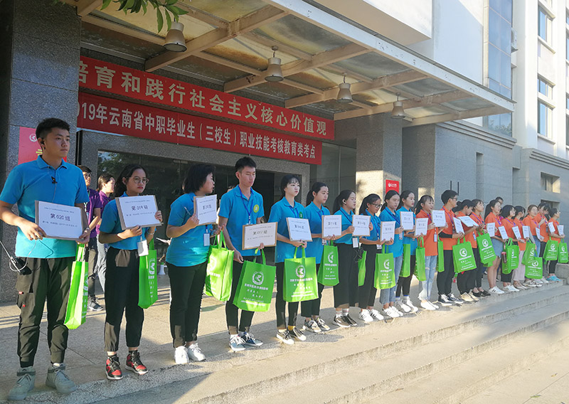 4月20日,2019年云南省中职毕业生教育类技能考核工作在惟行楼1栋完拉开序幕。本次考核要求高、任务重要,来自全省各地州市中职学校的2582名考生参加了本次教育类技能考试。技能考核共分职业认知与心理素质、言语技能、舞蹈技能、声乐技能、书写技能及简笔画技能等六大项。