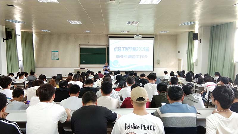 513日,为做好我院2019届毕业生教育工作,确保毕业生安全、有序离校,引导和教育上好最后一堂课。信息工程学院在惟实楼5102教室召开2019届毕业生教育大会。信息工程学院党总支书记陶军、2019届毕业班主任及全体毕业生参加大会,会议由辅导员张祥老师主持。