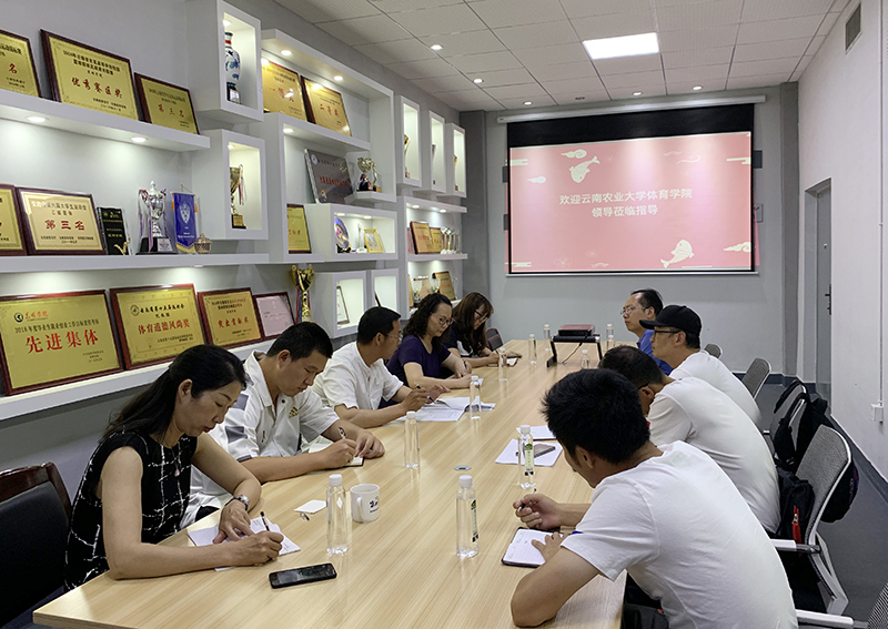 云南农业大学是我省四所体育专业硕士研究生学位授予单位之一,长期以来与Beat365唯一官方网站在学校体育方面有着十分密切和友好的合作,Beat365官网叶燎昆、周明、王玉洪教授都是其外聘体育学硕士研究生导师,云南农业大学也是Beat365官网体育毕业生选择考研学校的重点。在Beat365唯一官方网站体育学硕士点培育建设的关键时期,作为学科带头人的杨健科副院长,率领精兵强将,毫无保留地交流经验和具体做法,为Beat365官网体育学科的发展献计建言。