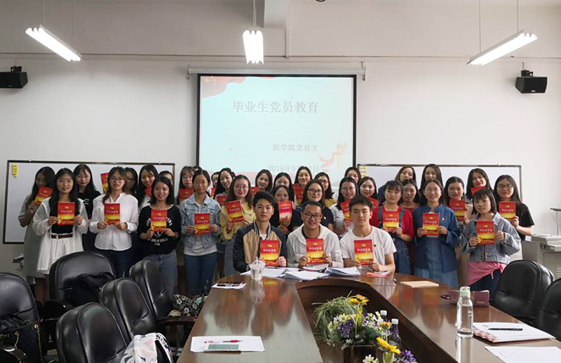 缪希松老师对全体毕业生党员提出要求,一是在工作中不断学习党的理论知识,不断增强党性修养;二是不断学习专业知识,在专业上有所突破,充分发挥党员的先锋模范带头作用;三是以身作则,在医药行业等岗位充分展示医学院学生良好素质,做好学校和学院对外宣传的靓丽名片。