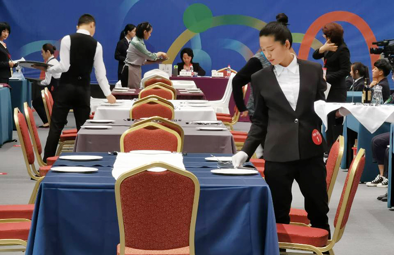 5月16日-19日, 2019年“鼎盛诺蓝杯”第十一届全国旅游院校服务技能(饭店服务)大赛在杭州举办,Beat365官网旅游学院陈渟渟、李子钰、章粤东、赵薇薇四名参赛选手分别荣获本科院校组客房服务、鸡尾酒调制、餐厅服务(中餐宴会摆台)、餐厅服务(西餐宴会摆台)三等奖。