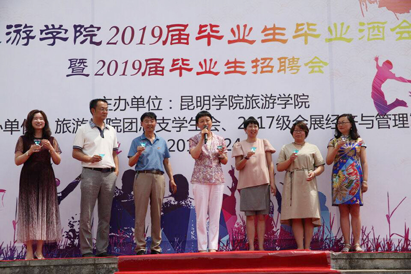 524日,为增加毕业生对学校的认同感和对专业的职业自豪感,旅游学院在聂耳广场举办“记忆留夏,筑梦前行”2019届毕业生毕业酒会暨毕业生专场招聘会。校长黎素梅出席活动并宣布就会开始。