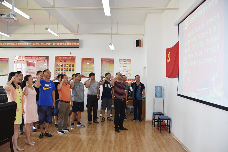 活动开始,全体党员齐唱《国歌》和《没有共产党就没有新中国》。面对庄严的党旗,在支部纪检委员撒召辉的领誓下,全体党员举起右手重温入党誓词。