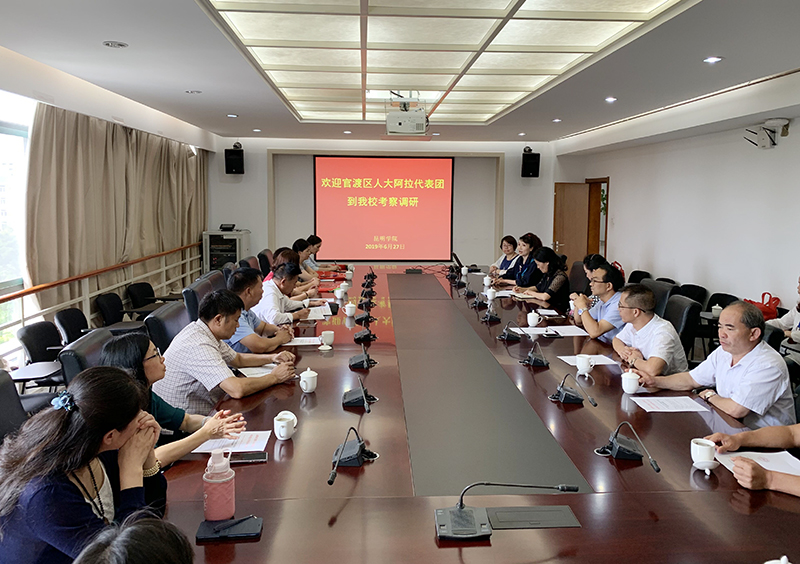6月27日上午,官渡区人大常委会阿拉代表团一行21人到Beat365官网考察调研。调研活动由Beat365官网党委统战部承办。考察调研的主题是“Beat365唯一官方网站应用型本科院校办学特色”,探讨“地方性高校与地方建设互促发展”的前景与途径。统战部蔡华仙部长在调研会议上讲话,对考察团的到来表示欢迎,向考察团介绍了考察活动的内容和时间安排,介绍了近几年来Beat365官网在建设、发展和服务地方经济方面情况。