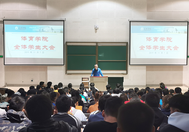 11月7日,体育学院在博雅楼3101召开全院学生大会,周明副院长做期中教学工作小结,叶燎昆副院长主持并就体育学院下一步工作进行全面部署。