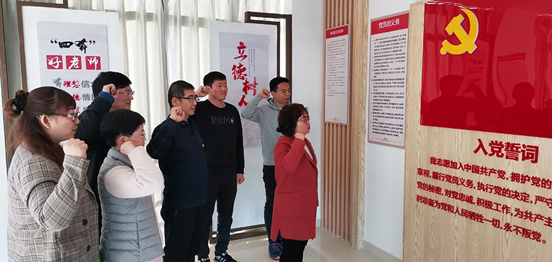 支部全体党员在机关党委党员活动室重温入党誓词,签订党员承诺书,“争做十表率”。