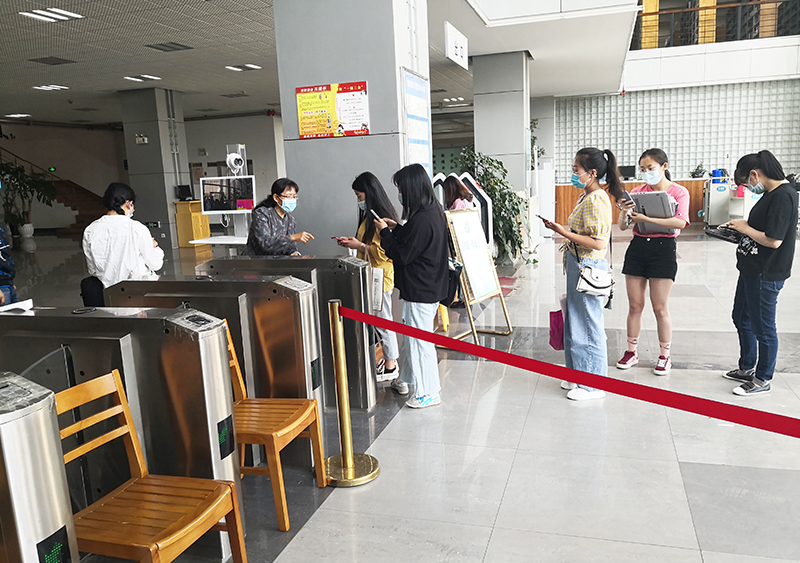 在入口处和出口处图书馆还安排工作人员对入馆和离馆读者进行分类疏导,避免出现因人员进出导致拥堵,力保在第一站为读者把好安全关。