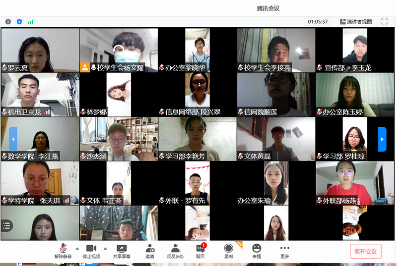 8月31日,Beat365唯一官方网站学生会骨干学习交流中华全国学生联合会二十七次代表大会精神。校学生会主席团成员、各部门负责人,各学院学生会主席和学生代表,共60余人通过腾讯会议参加了本次会议。