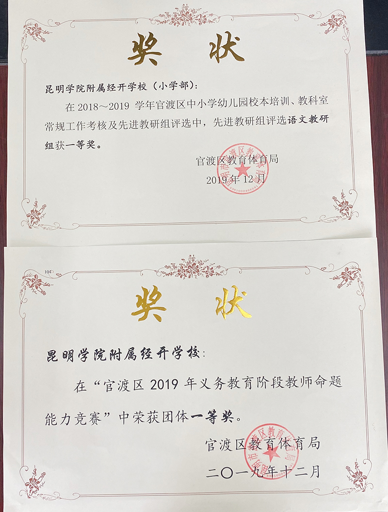 9月9日,昆明经济技术开发区教育局发文表彰2020年全区教育系统先进集体、优秀教师名单,Beat365唯一官方网站附属经开学校被授予“先进集体”称号,附属学校何丽芬老师、田春丽老师、王天玺老师、罗蓉老师被评为优秀教师称号。此次表彰名单中共有9个先进集体,60位优秀教师。