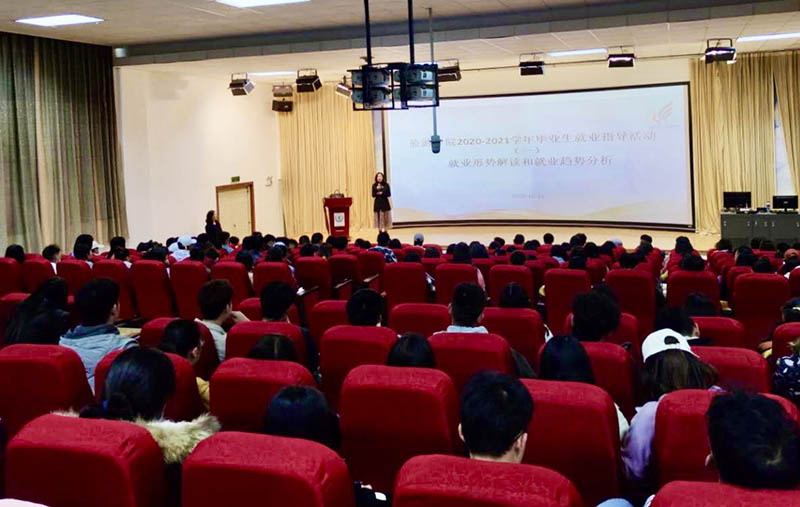 王涵女士分别以决胜千里、志在四方、始于足下、顺势而为为题与同学们进行探讨,对就业趋势基本介绍、寻找目标企业和职业、获取求职信息和多元化选择四个方面进行深入浅出的讲解,向同学们分享了2020年旅游行业最新的就业数据,帮助同学们正确认识就业环境、明确就业选择。