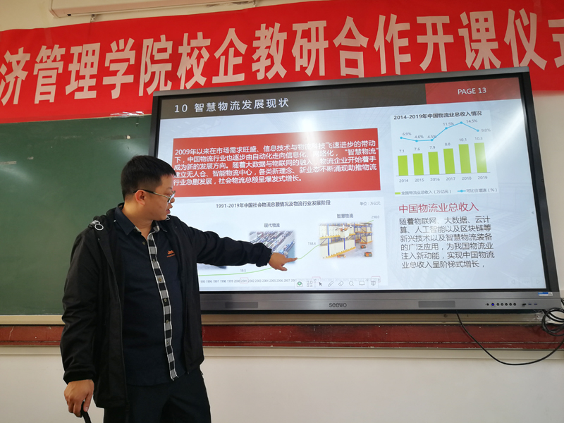 116日,经济管理学院在昆师路校区2308教室成功开展了校企教研合作——“企业家进课堂”活动。由学院的校外实习基地铁塔物流公司牵头,联合省内中铁物流、农垦物流等八家知名物流企业组成的企业家授课团队,为学院2017级物流管理专业同学做物流系列专题讲座。