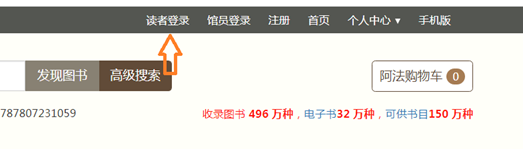 2.按照橙色箭头,点击“读者登录”