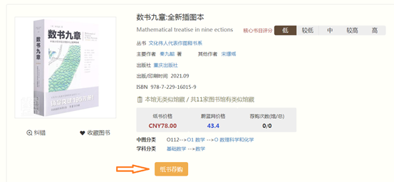 5.查看选定的图书详情,确认本馆无收藏,点击“纸书荐购”。